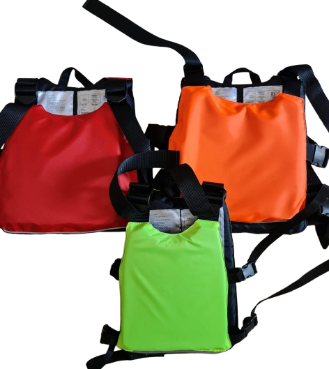 Manufactured in Hungary. Available in multiple sizes, can be fitted to the body with multiple straps. The lifejacket needs to be selected based on our weight and size, and then used with the straps pulled tight.